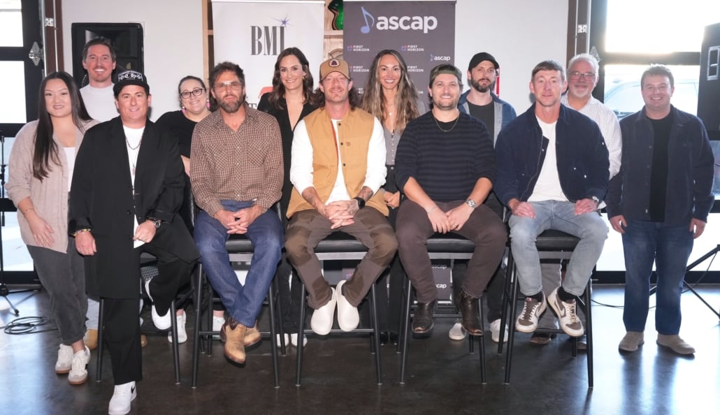 (Back Row L-R): Rhythm House’s Vanna Moua, Warner Chappell’s Spencer Nohe, Studio Bank’s Kari Barnhart, ASCAP’s Evyn Johnston, Sony Music Publishing’s Kenley Flynn, MCA’s Damon Moberly, HAYLO Music’s Josh Saxe; Front Row L-R: Jesse Frasure (BMI), Canaan Smith (ASCAP), Tyler Hubbard (BMI/Producer), Jordan Schmidt (Producer), Ashley Gorley (ASCAP); Photo Credit Larry McCormack for BMI