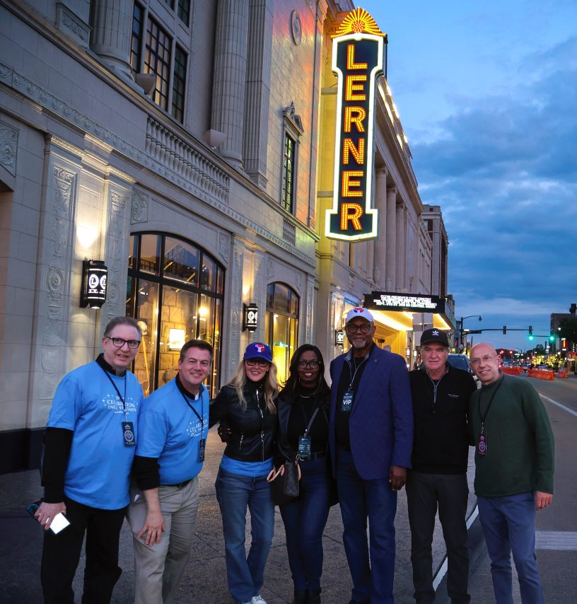 Pictured (L-R): Bob Garcia (Director of Events/Finance Lerner Theatre), Carl Thompson (Lerner Theatre GM), Sherry May (Interim GM/Consultant), Regina Robertson (wife of Mayor Robertson), Rod Robertson (Mayor of Elkhart), Scott Welch (CEG Live), and Blake McDaniel (CEG Live). Photo: Courtesy of CEG Live
