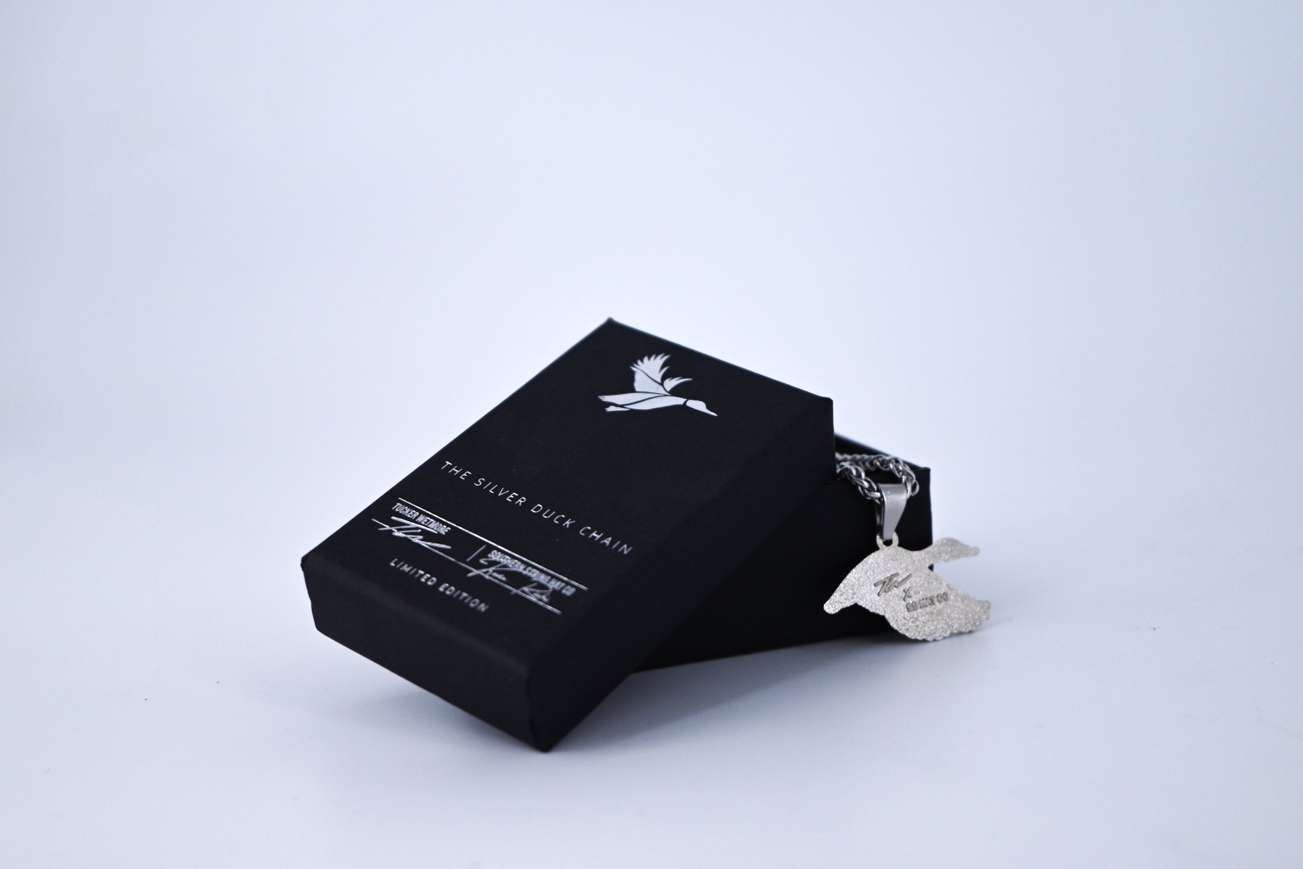 Tucker Wetmore recently collaborated with Southern String Hat Co., releasing an exclusive silver duck necklace. The limited edition drop sold out within two hours of its initial release.