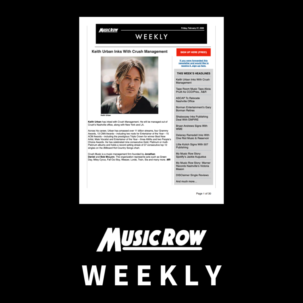 The MusicRow Weekly is delivered every Friday, featuring Nashville’s top music industry news, exclusive interviews, song reviews, radio and songwriter charts and more. Sign up for free here.