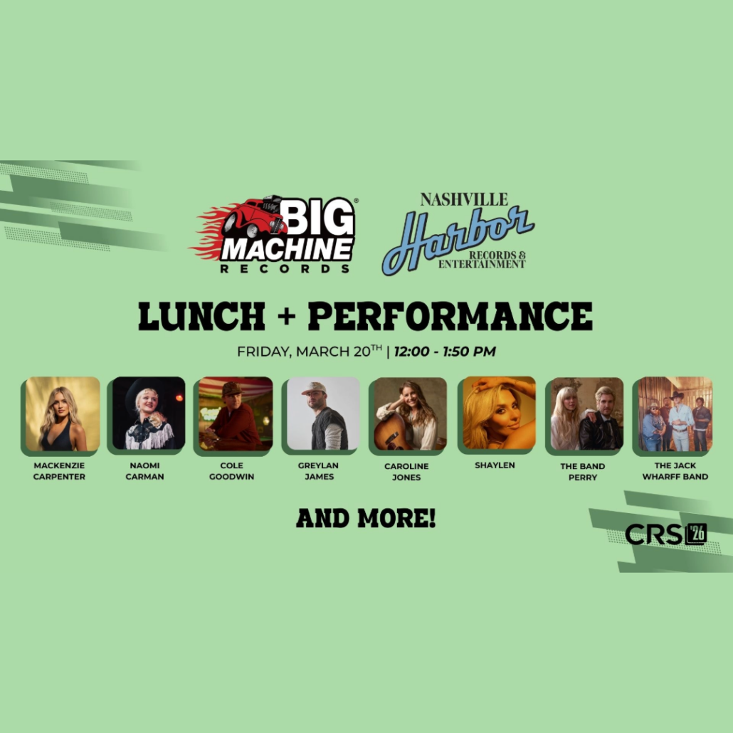 Big Machine Records/Nashville Harbor Records & Entertainment has revealed its lineup for its 2026 CRS luncheon, taking place March 20 at 12 p.m.