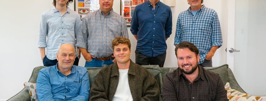 Pictured (L-R, front row): Barry Weiss (RECORDS), Ethan Garner, Matt Musacchio (Champ Management/Red Light Management; (L-R, back row): Andrew Saltman (RECORDS), Josh Easler (RECORDS), Josh Brackin (Brackin Law), Joe Fisher (RECORDS). Photo: Courtesy of RECORDS Nashville