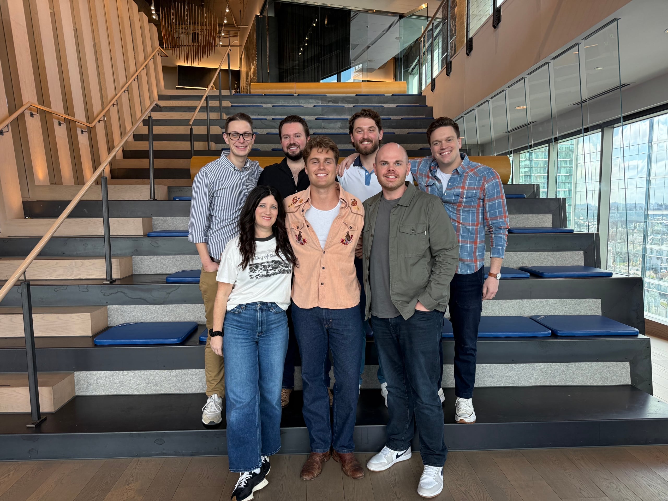 Pictured (L-R, front row): WME’s Carrie Murphy, Ethan Garner and WME’s Adam Fisher. (L-R, back row): WME’s Caleb Fenn, Champ Management’s Matt Musacchio, Champ Management’s Evan Miller and WME’s Carter Green. Photo: Courtesy of WME
