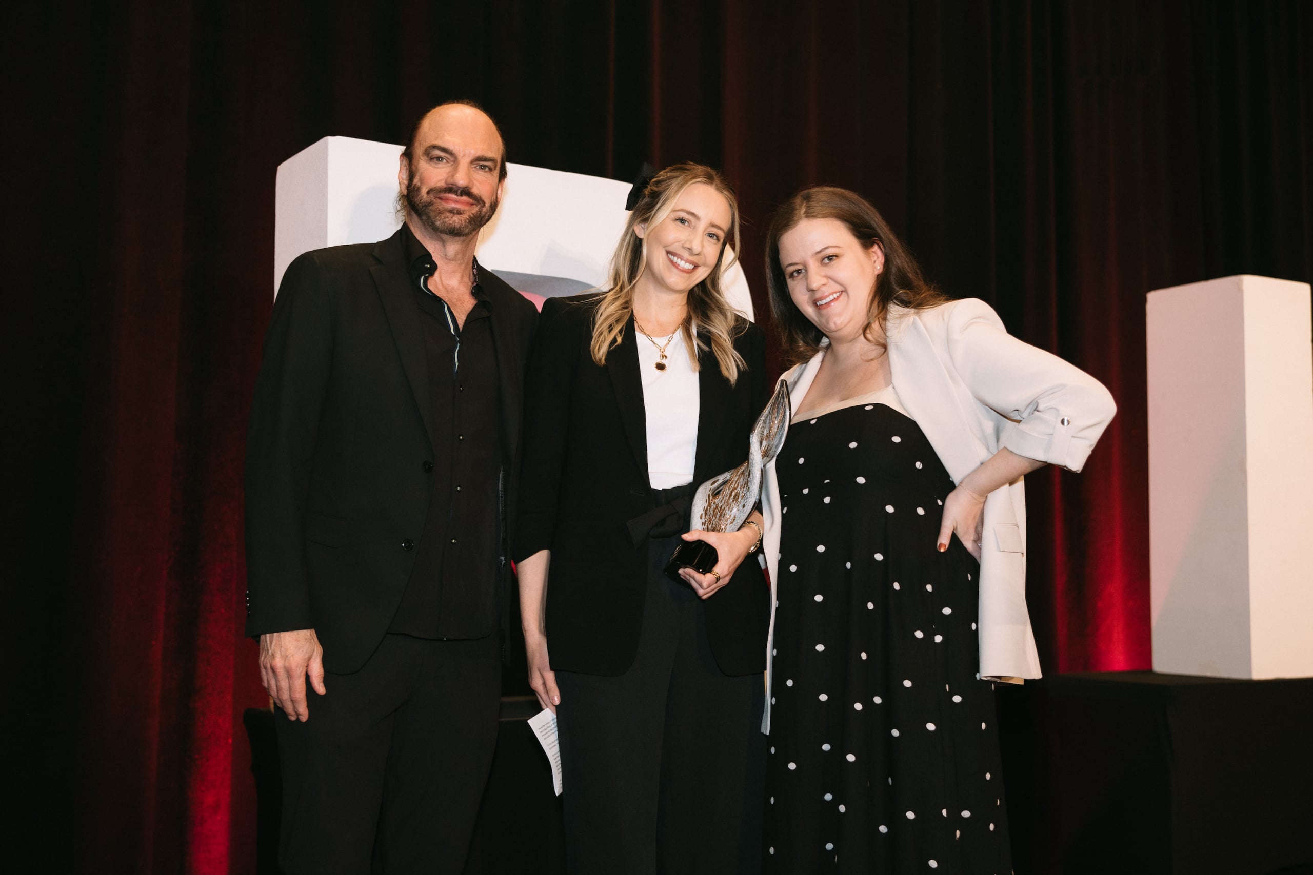 Pictured (L-R): MusicRow‘s Sherod Robertson, honoree Sophia Sansone, MusicRow‘s LB Cantrell. Photo: Sara Katherine Mills