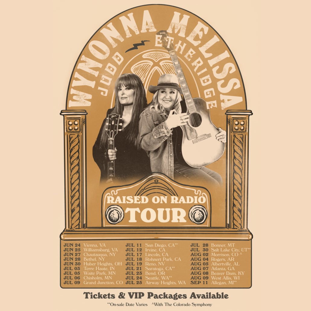 The two will visit San Diego, Reno, Seattle, Atlanta, Salt Lake City and more on the new tour, which runs through Sept. 11. Fans can sign up for early access to tickets for the tour, including exclusive VIP packages, by visiting Wynonna.com and MelissaEtheridge.com. Artist pre-sales start today (March 10), with public on-sale beginning March 13. For every ticket sold, Etheridge and Judd will each donate $1 to The Etheridge Foundation dedicated to finding prevention and treatment for opioid use disorders via plant medicine research and more, and $1 to St. Jude’s Children Hospital.