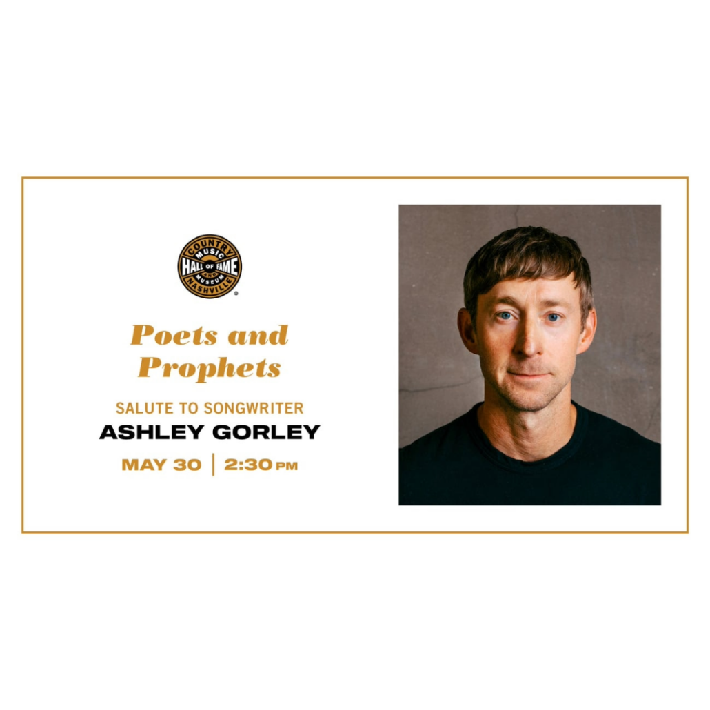 Ashley Gorley will be featured as the next Country Music Hall of Fame and Museum Poets and Prophets honoree. The program will take place May 30 at 2:30 p.m. in the museum’s Ford Theater. Tickets are included with museum admission and free to museum members. Seating is limited, and a program ticket is required for admittance. Tickets for the Gorley program will go on sale this Thursday (April 16) at 10 a.m.