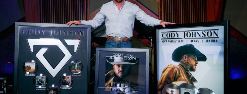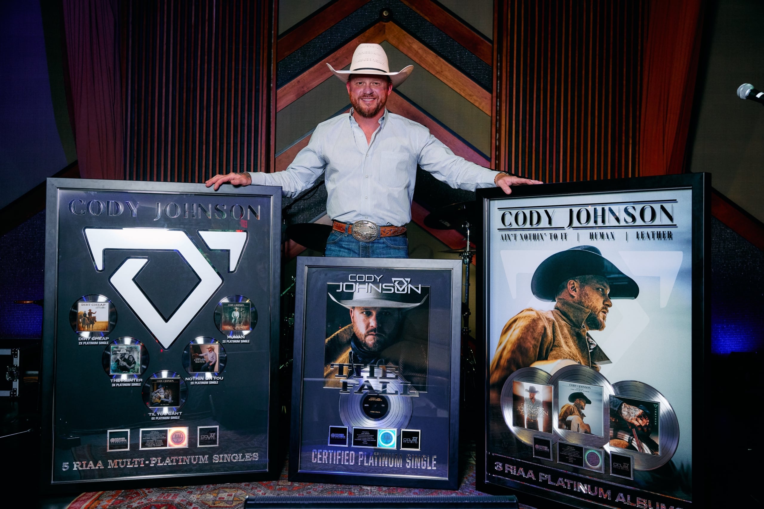 Cody Johnson was recently surprised with new plaques from Warner Records Nashville at last week’s listening party for his new album, Bank Of The Trinity.