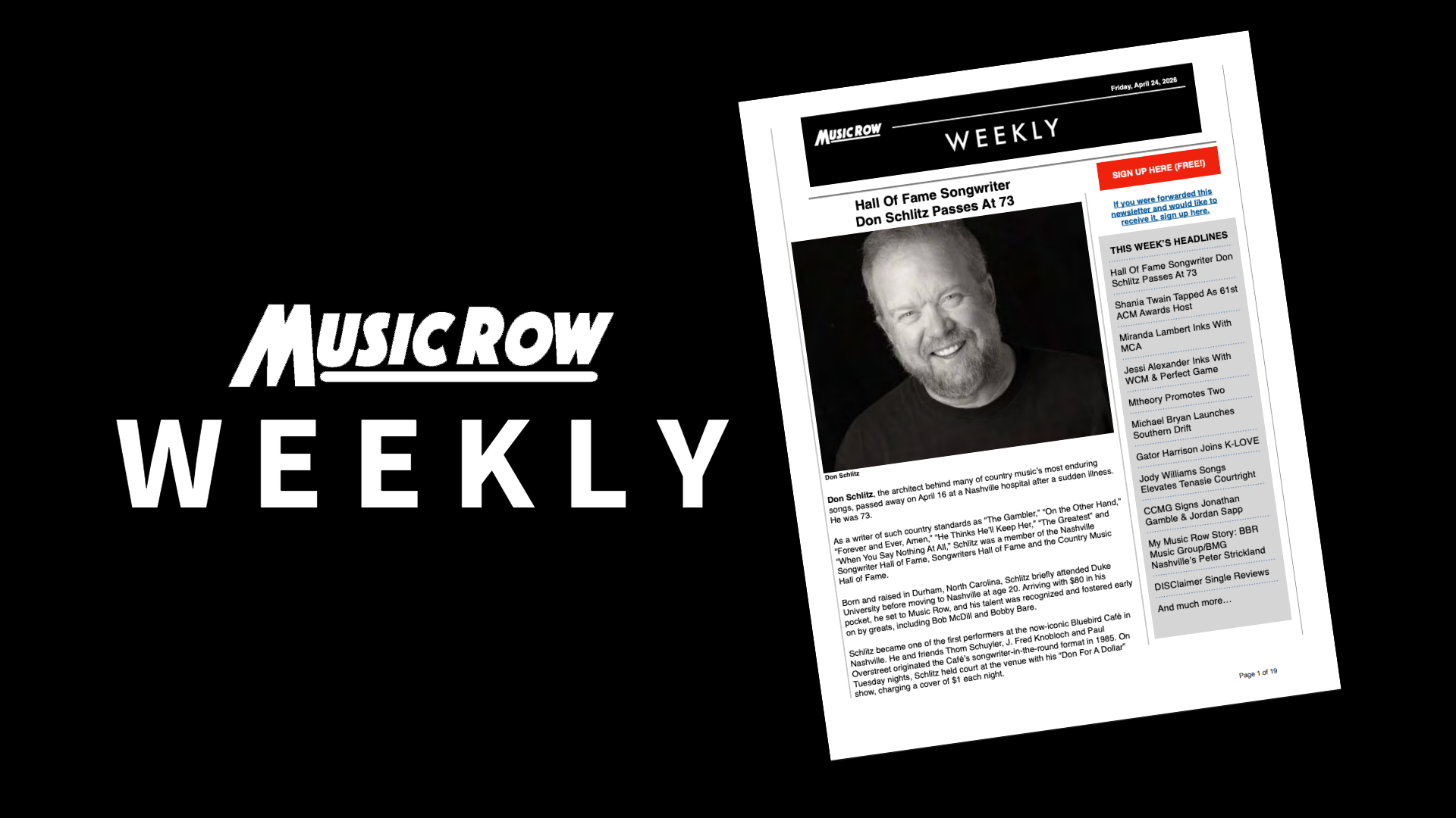 - MusicRow Weekly (Don Schlitz, News, Charts, More…) - April 24, 2026