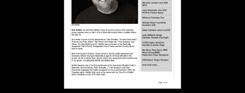 MusicRow Weekly (Don Schlitz, News, Charts, More…)