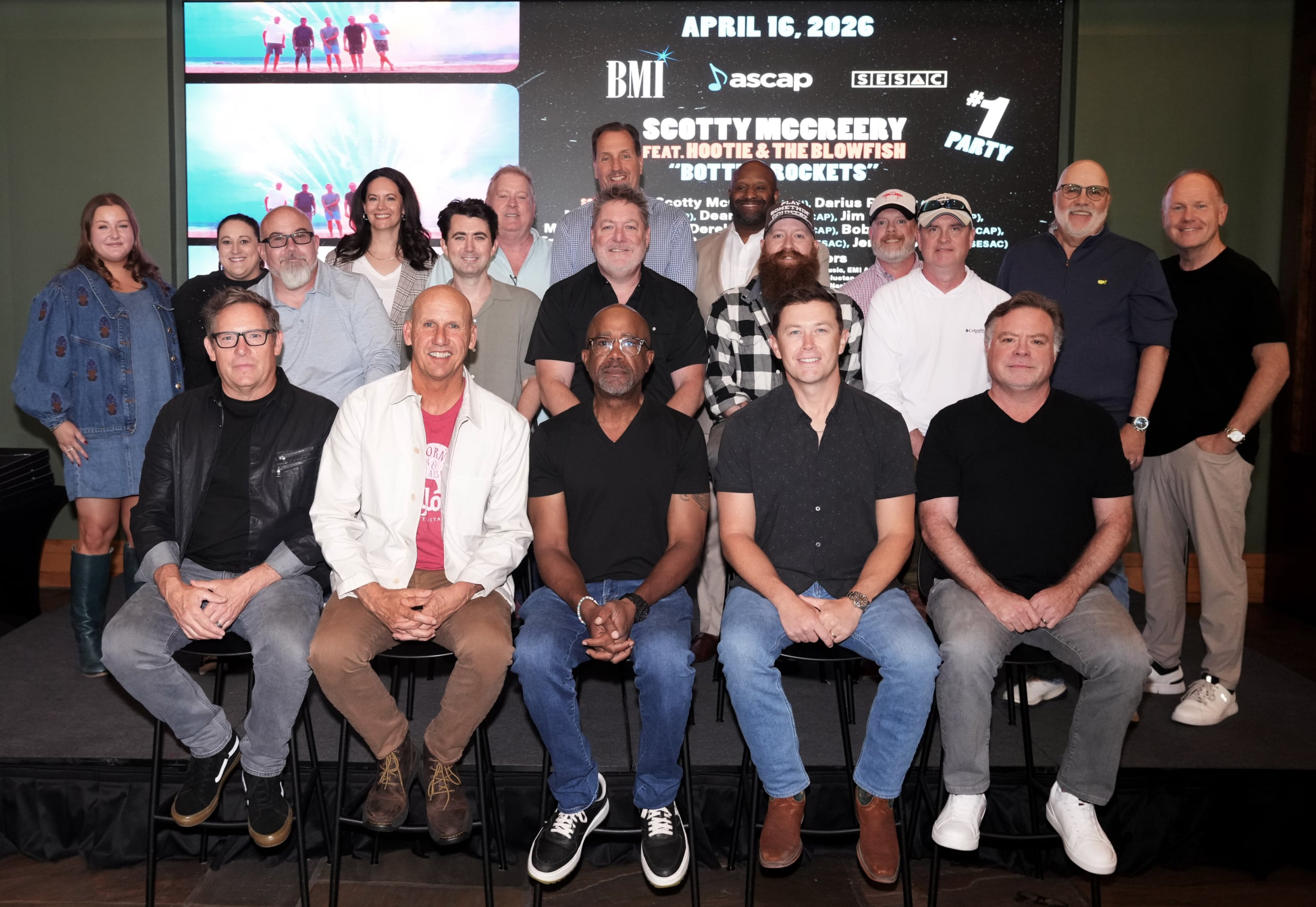 Scotty McCreery and Hootie & The Blowfish celebrated their No. 1 track “Bottle Rockets” on Thursday (April 16) at BMI’s Nashville headquarters.