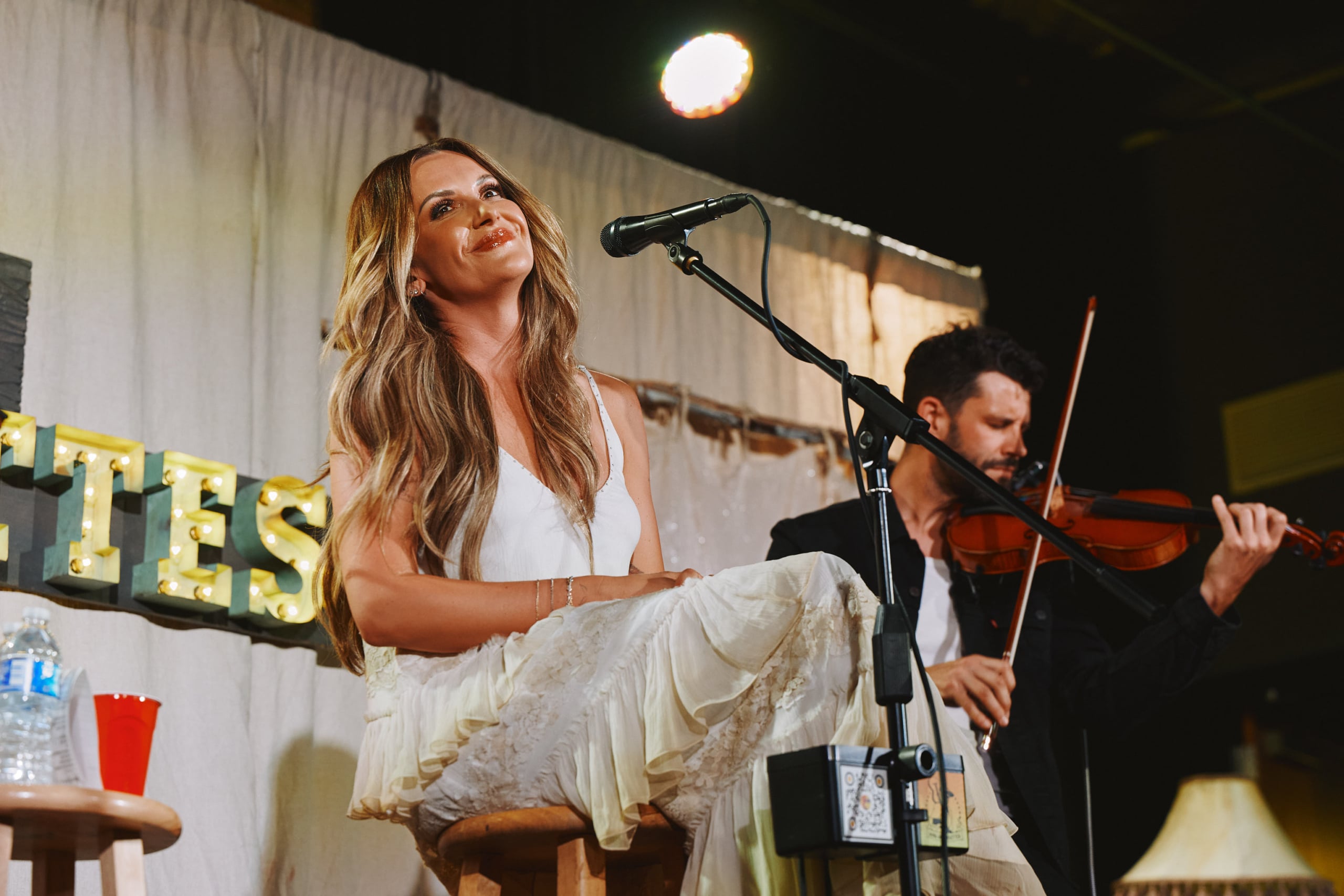The evening then turned to the first writer’s round of the night. The room was treated to original tunes from Abbey Rowe (“Crazy or Pregnant”), Abbie Callahan (“Simon Says”), Alison Nichols (“Box Wine Problems”), Nanseera (“Mobile”), and Ashley Anne, who was debuting in the show, and sang a tune cut by the woman of the night Carly Pearce, “Why God, Why Me.” The creative and emotional lyrics set the tone for the evening, as the group ended with a cover of Pearce’s “What He Didn’t Do.” Throughout the round, each of them expressed their admiration for Pearce and her trailblazing career.