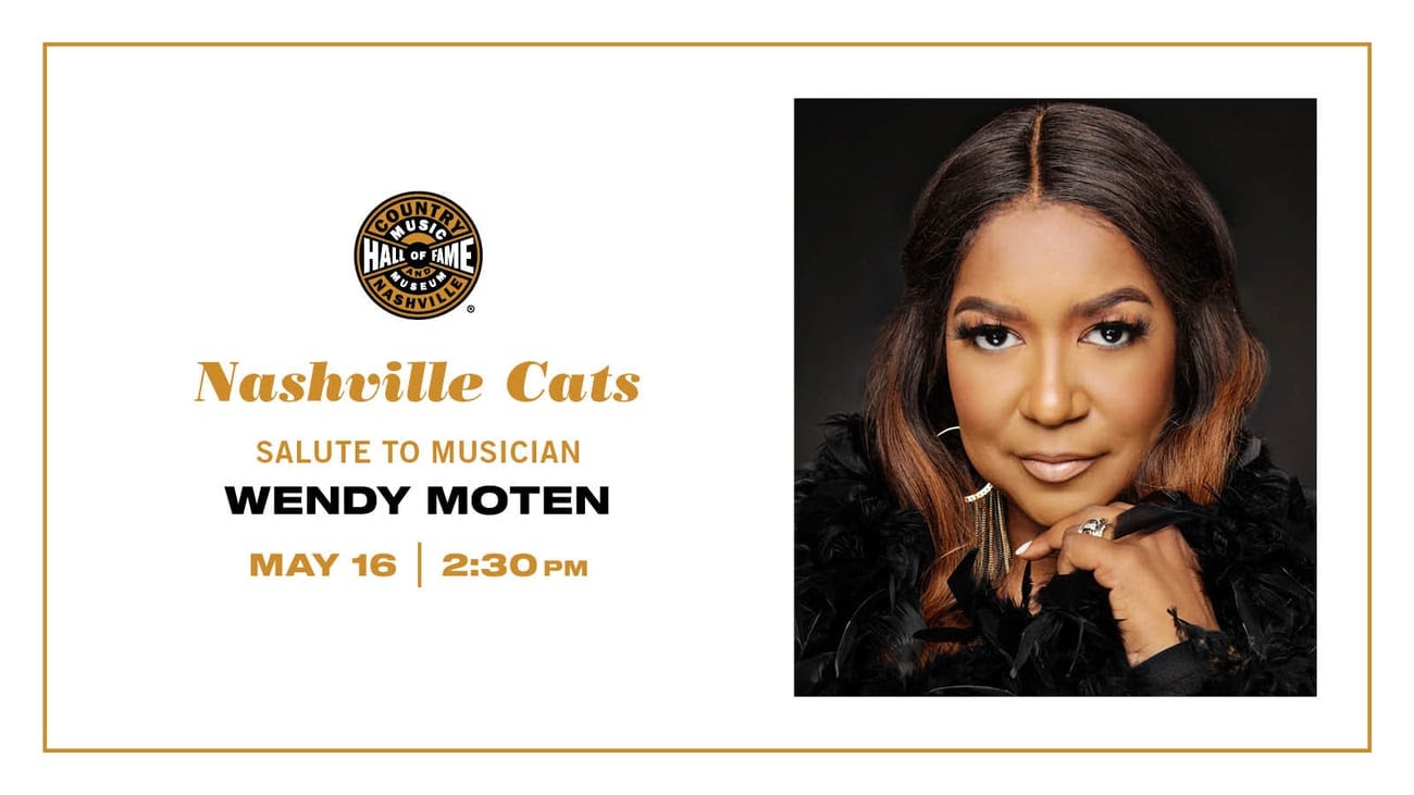 /by Lorie HollabaughVocalist Wendy Moten will be featured in the Country Music Hall of Fame and Museum’s “Nashville Cats” interview series on May 16 in the museum’s Ford Theater.