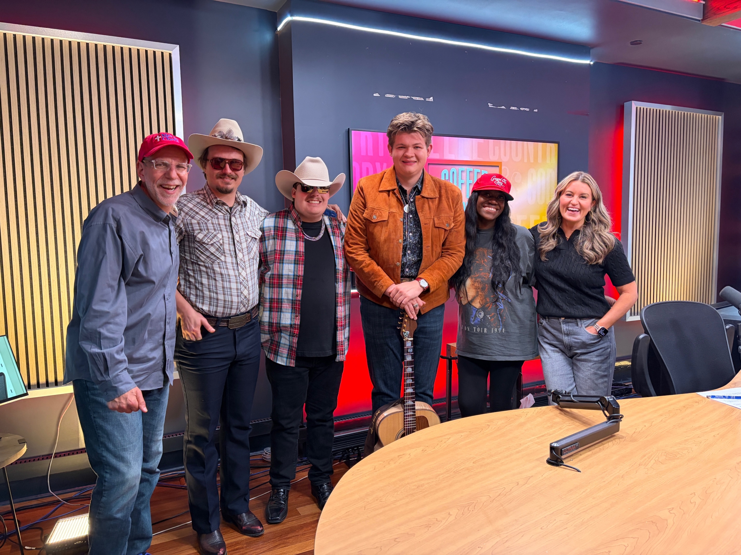 Pictured (L-R): Host Charlie Mattos, Andrew Lambie (Kentucky Kowboys guitarist), Austin Clark (Kentucky Kowboys drummer), Alex Miller, host Amber Anderson and host Kelly Sutton.