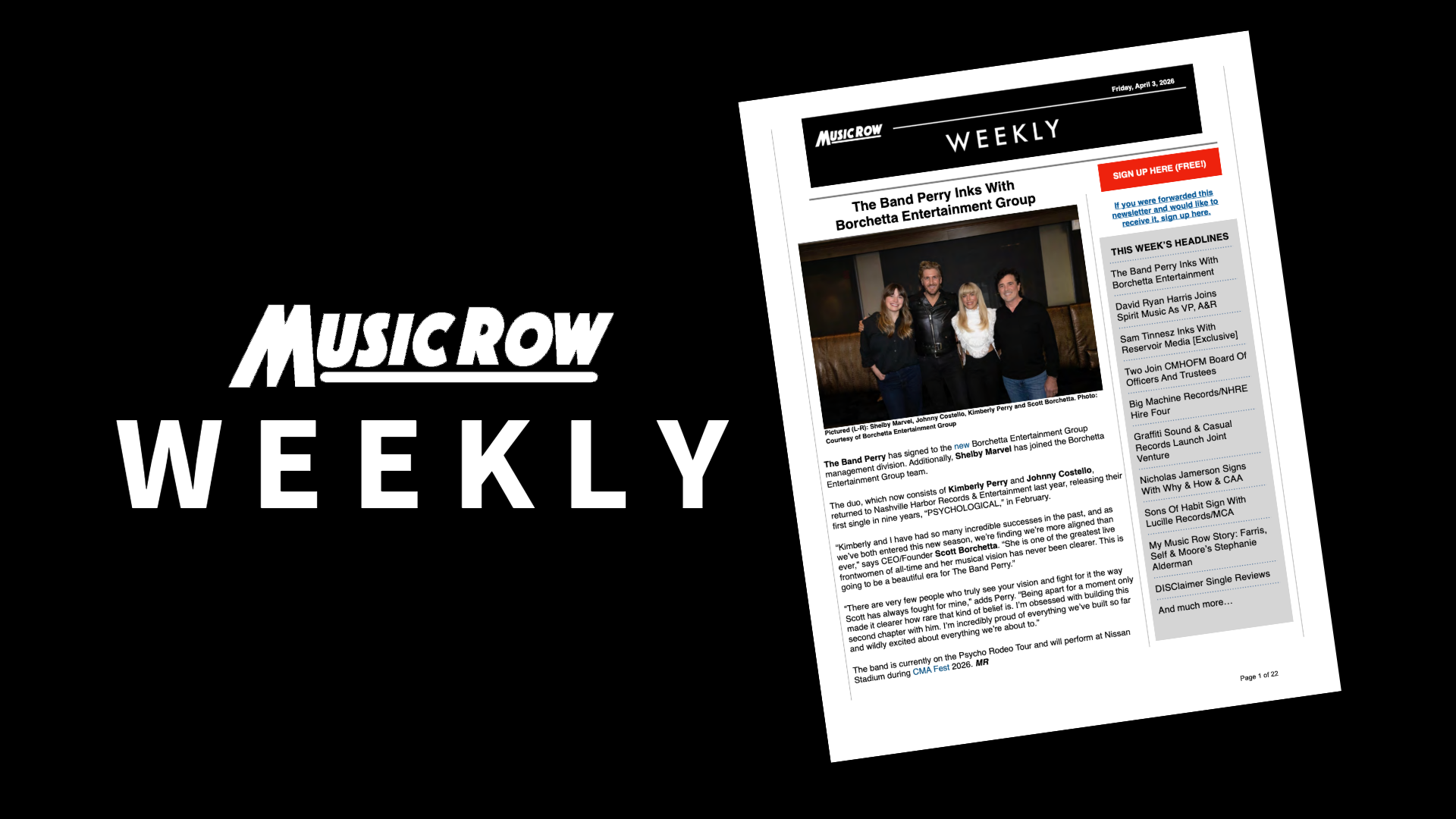 The MusicRow Weekly is delivered every Friday, featuring Nashville’s top music industry news, exclusive interviews, song reviews, radio and songwriter charts and more. Sign up for free here.