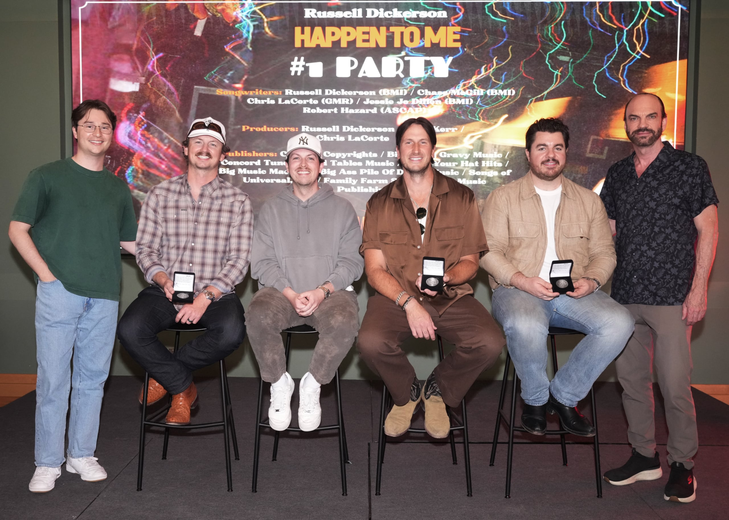 BMI’s lobby was packed Tuesday afternoon (April 15) as the industry gathered to celebrate Russell Dickerson and the songwriters behind his sixth career No. 1, “Happen To Me.”